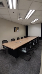 - Ruang Meeting: Supaya terasa lebih luas, gunakan warna abu-abu tua dengan putih untuk meningkatkan fokus.